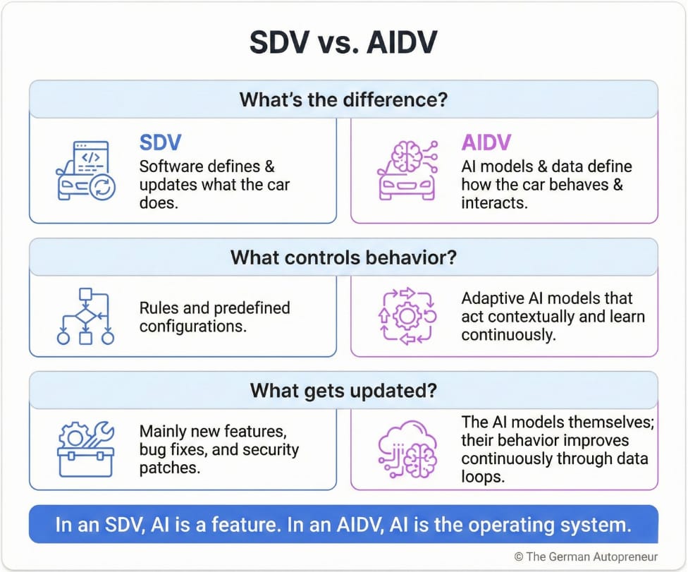 In an SDV, AI is a feature. In an AIDV, AI runs everything.