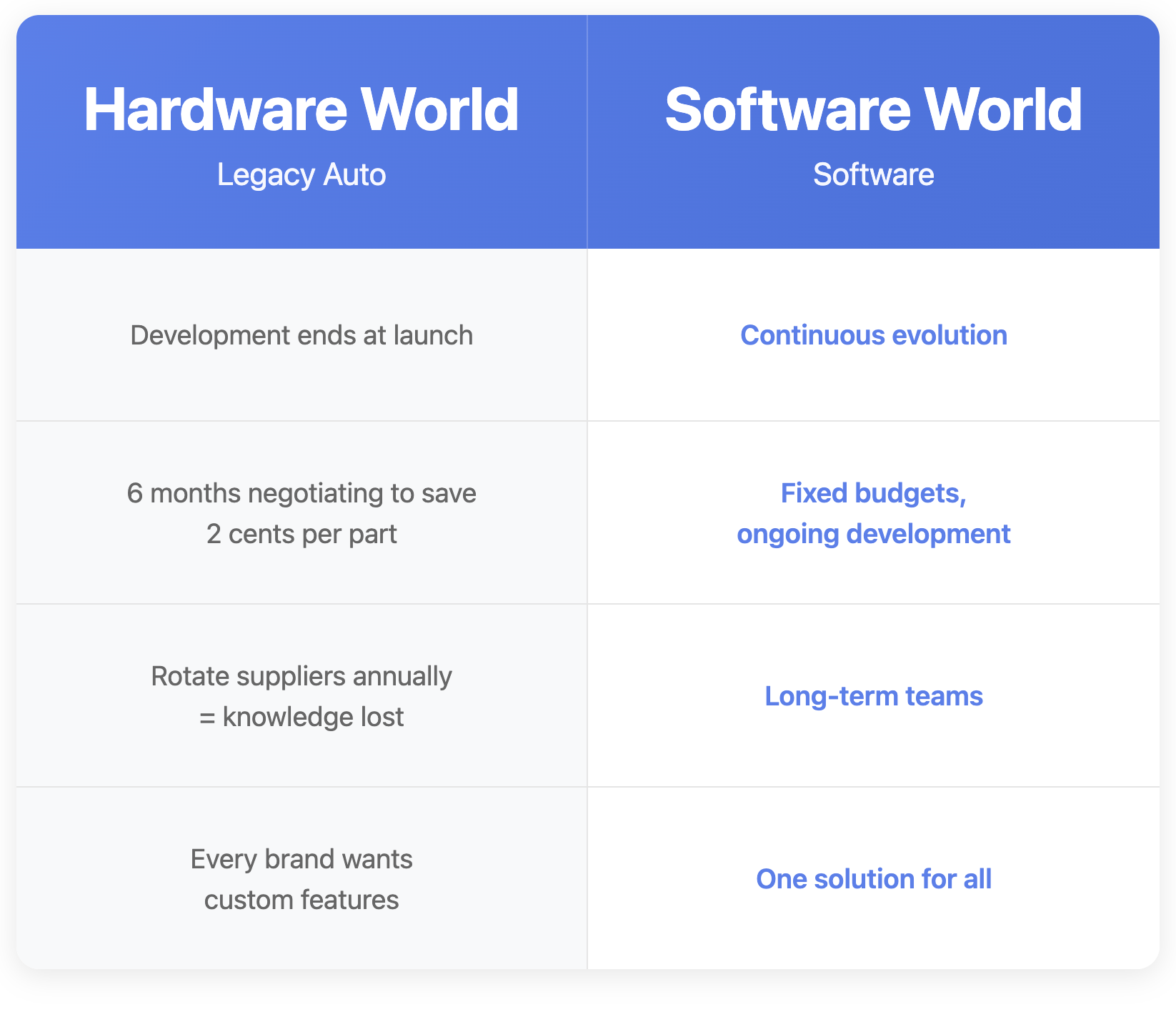 This system is built for hardware. For building cars. That's not bad. It was perfect for a stable world.